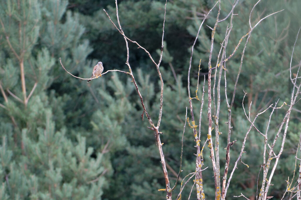 Das bunte Treiben blieb nicht unbeobachtet: Ein Turmfalke verfolgte von einem Baum aus das Geschehen und versuchte vergeblich sein Jagdglück